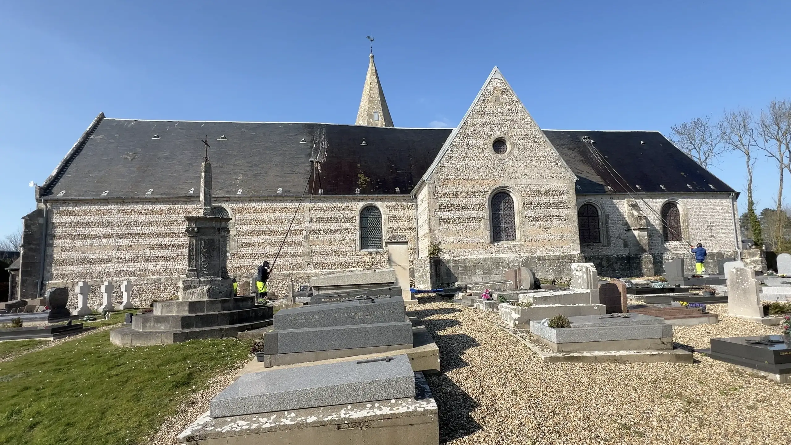 Réalisation du nettoyage de toiture de l'église de Criquebeuf-en-caux