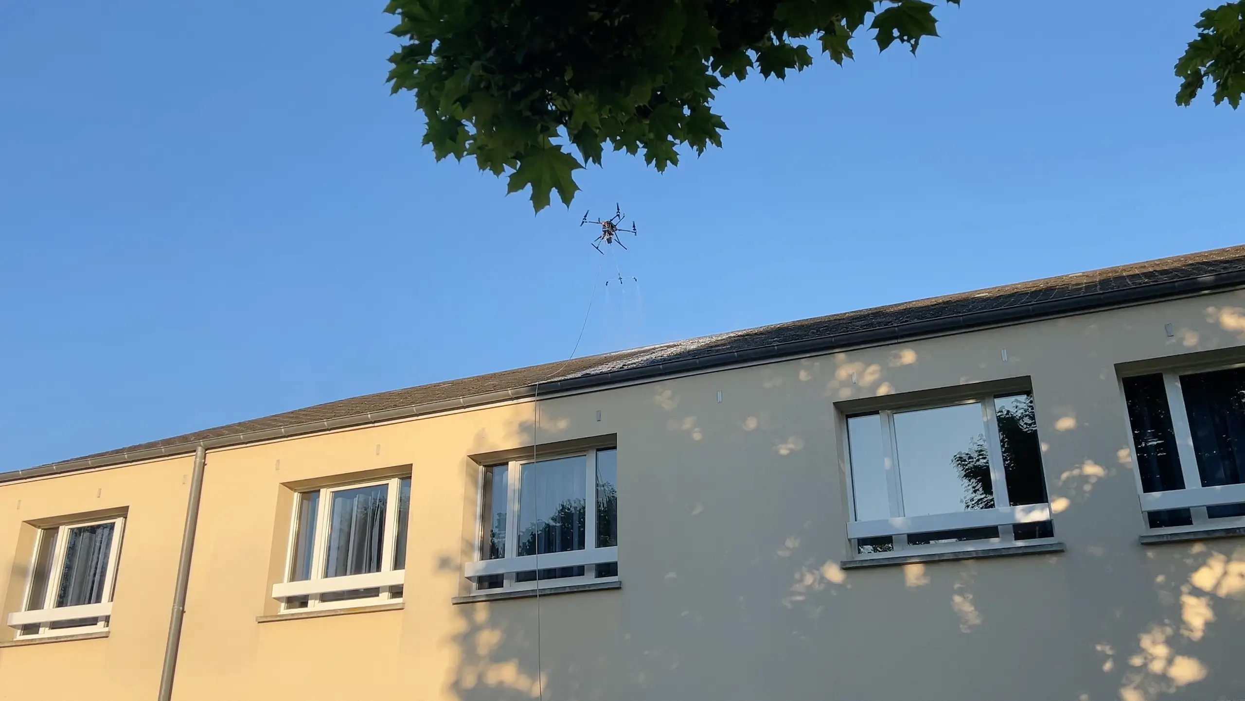 Il n’y a plus qu’à survoler le toit tout en pulvérisant sur l’intégralité de la toiture.